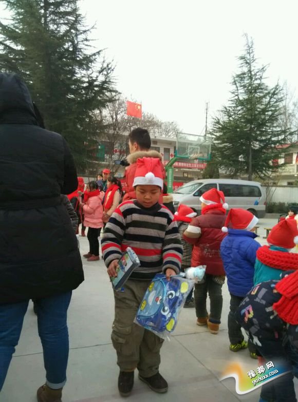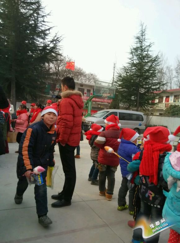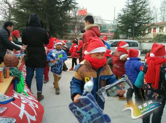 昨天上午,地处河南省伊川县西北的康坪小学迎来了一起头戴小红帽的志愿者和爱心人士,他们为这里的孩子们带来了圣诞节的快乐。在这个西方舶来的节日里,志愿者和爱心人士为孩子们带来了圣诞礼物圣诞帽,新书包,文具,体育用品和厚厚的围巾。