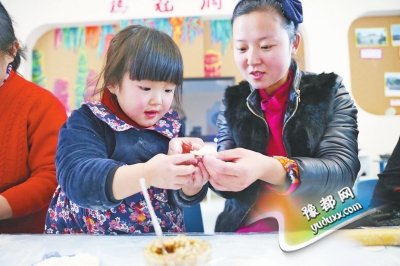 本报讯 昨日,洛龙区第二实验幼儿园、洛阳市第一国际幼教中心和洛阳第五十五中学教育集团小博士幼儿园,萌娃们的父母也来到幼儿园,和宝贝们一起动手包“亲子水饺”(如上图)。